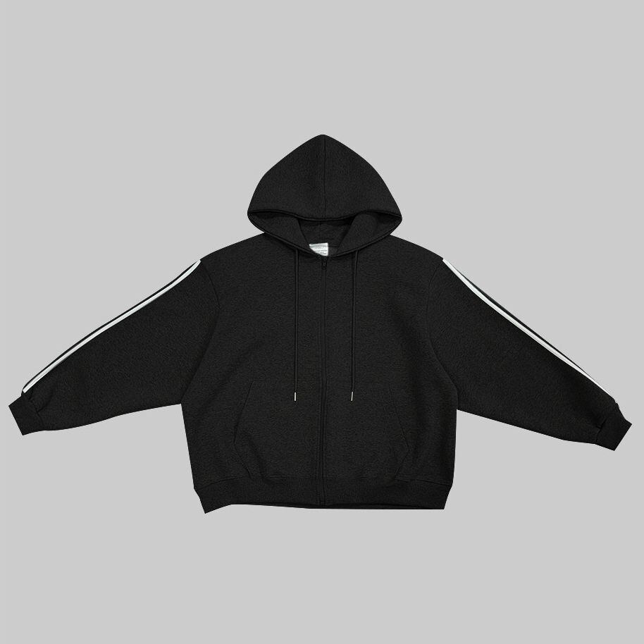 フロントZIPで羽織としても使える万能パーカーは、サイドライン入りでスタイリッシュに。