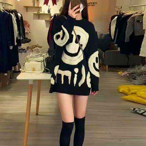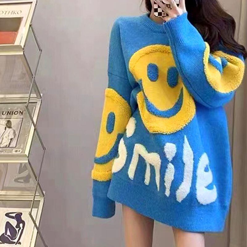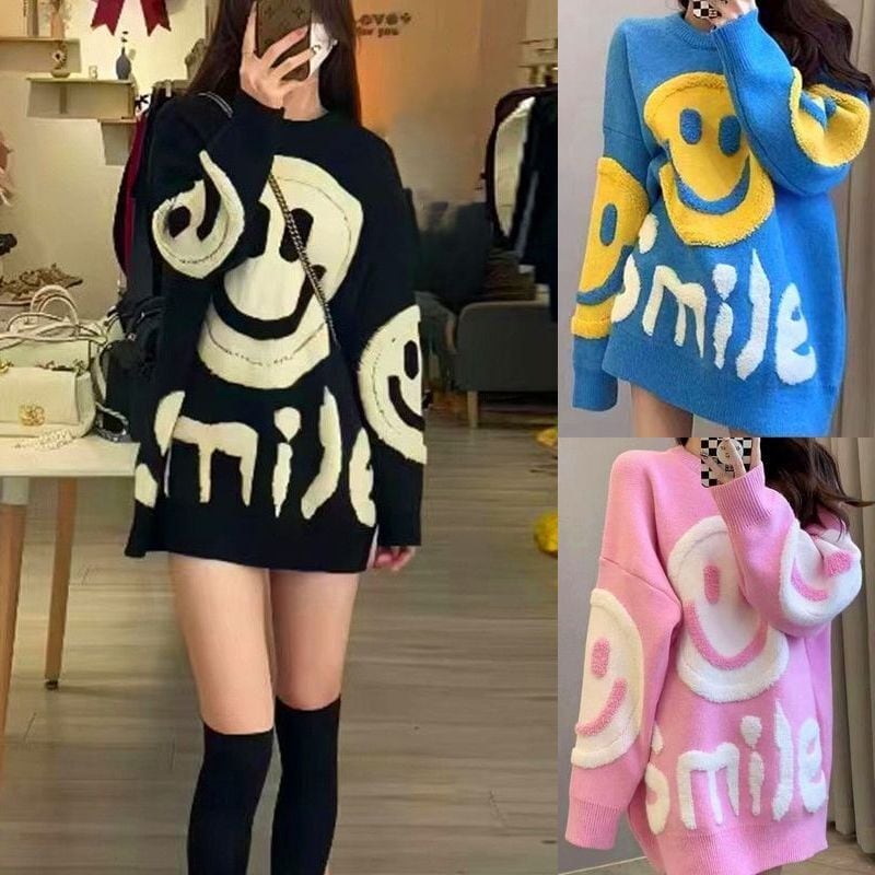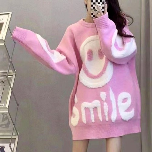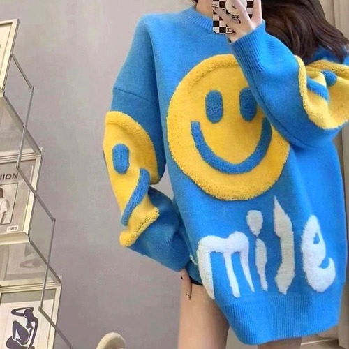 レディース レディースファッション ニット スマイリー ニコちゃんマーク セーター トップス プルオーバー クルーネック ゆったり ルーズ 長袖 レトロ 大人可愛い ガーリー カジュアル おしゃれ 通販 韓国 韓国通販 韓国ショッピング 韓国ファッション おるちゃん オルチャン オルチャンファッション 10代 20代 30代 40代 可愛い かわいい お洒落 レディス プチプラ 激安 安い コーデ コーディネイト 人気 おすすめ