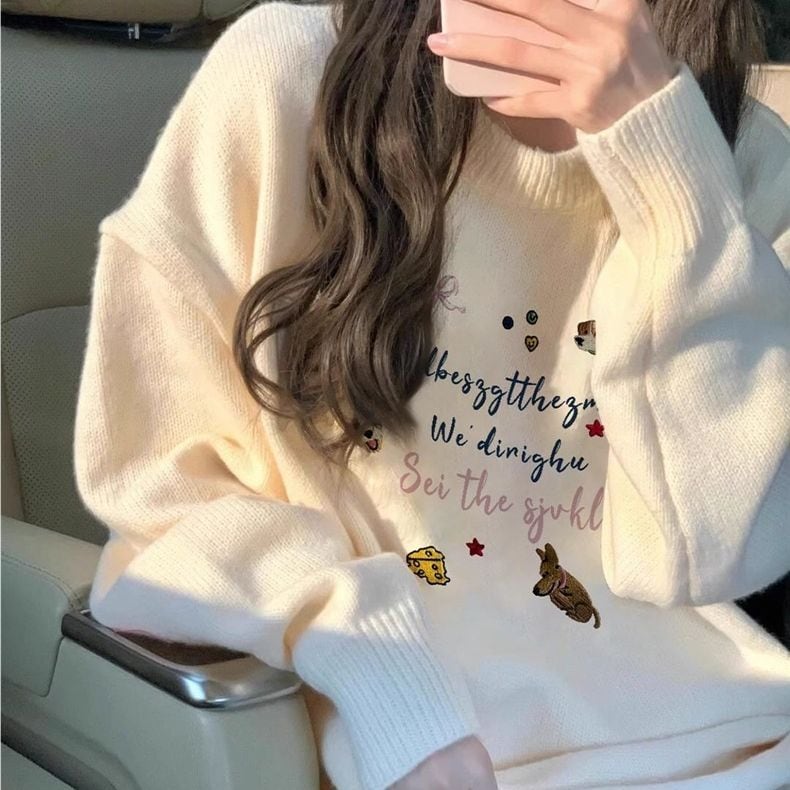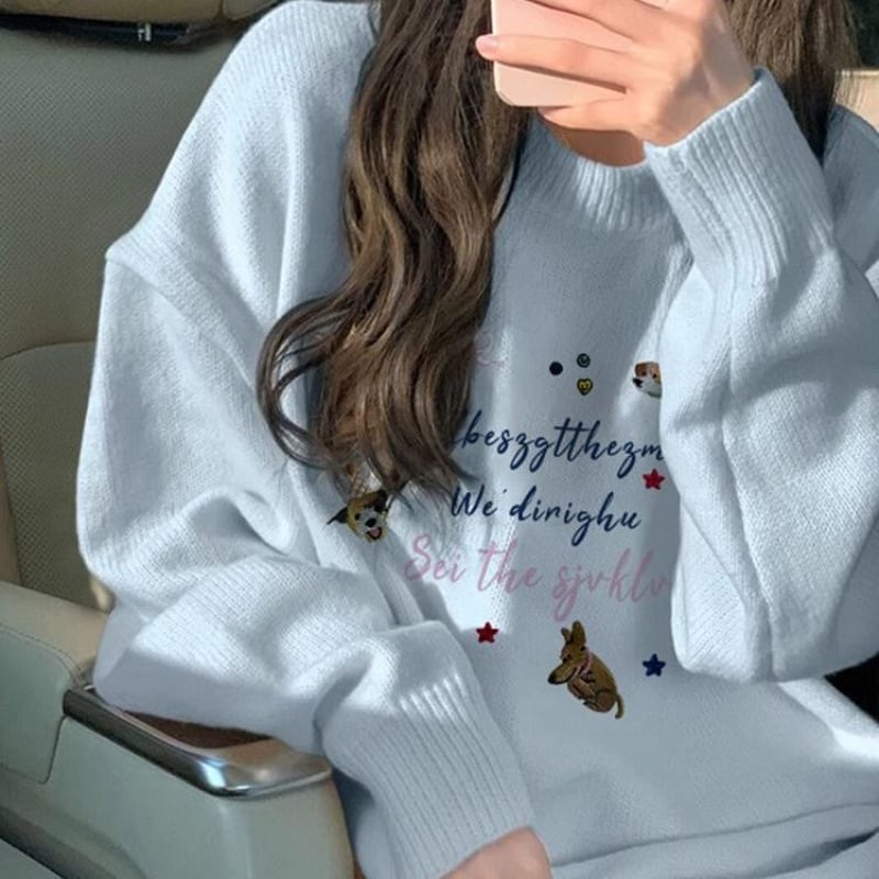 レディース レディースファッション ニット セーター トップス クルーネック プルオーバー ゆったり ルーズ 長袖 レトロ 大人可愛い ガーリー カジュアル おしゃれ 通販 韓国 韓国通販 韓国ショッピング 韓国ファッション おるちゃん オルチャン オルチャンファッション 10代 20代 30代 40代 可愛い かわいい お洒落 レディス プチプラ 激安 安い コーデ コーディネイト 人気 おすすめ