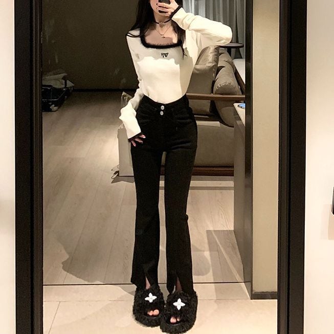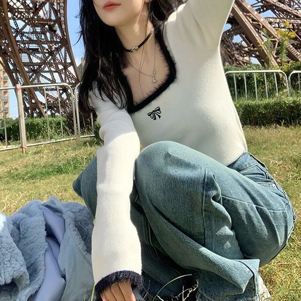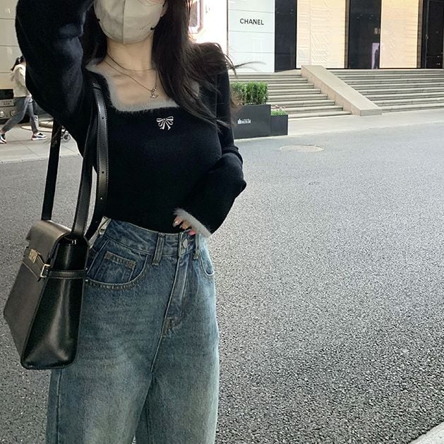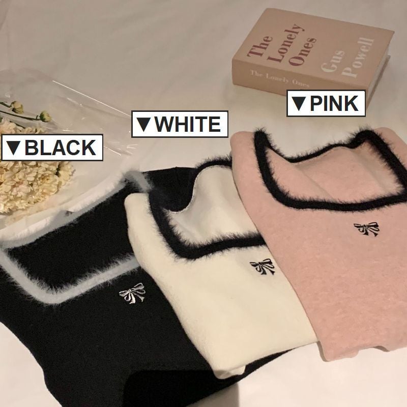 レディース レディースファッション ニット セーター トップス 配色リボン スクエアネック ショート丈 プルオーバー スリムフィット 長袖 レトロ 大人可愛い ガーリー カジュアル おしゃれ 通販 韓国 韓国通販 韓国ショッピング 韓国ファッション おるちゃん オルチャン オルチャンファッション 10代 20代 30代 40代 可愛い かわいい お洒落 レディス プチプラ 激安 安い コーデ コーディネイト 人気 おすすめ