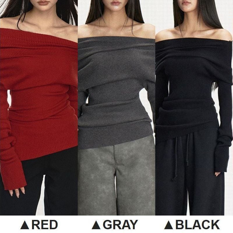 レディース レディースファッション ニット トップス オフショルダー オフショル リブ ワンショルダー プルオーバ ースリムフィット 長袖 レトロ 大人可愛い ガーリー カジュアル おしゃれ 通販 韓国 韓国通販 韓国ショッピング 韓国ファッション おるちゃん オルチャン オルチャンファッション 10代 20代 30代 40代 可愛い かわいい お洒落 レディス プチプラ 激安 安い コーデ コーディネイト 人気 おすすめ