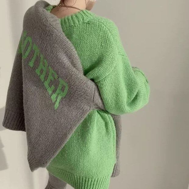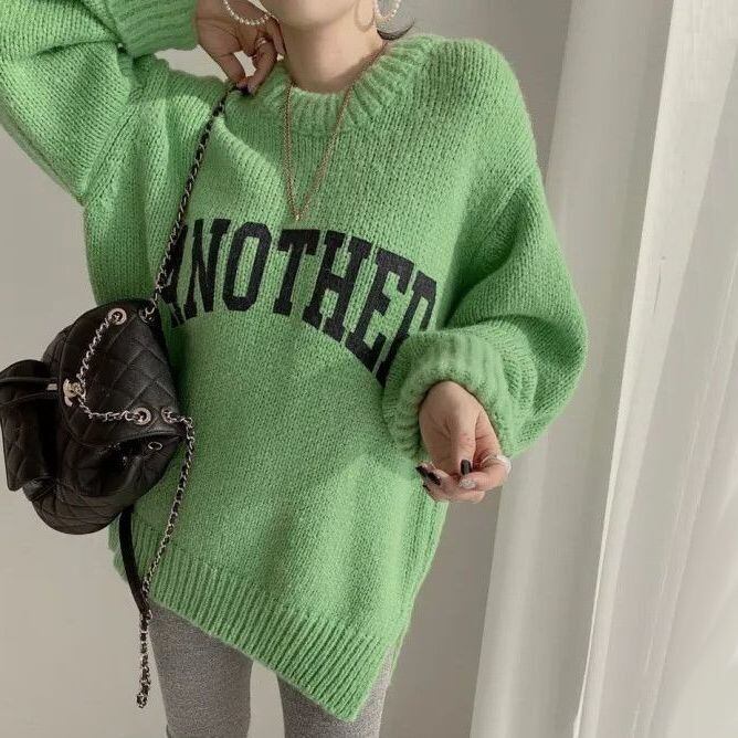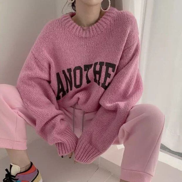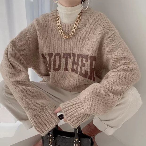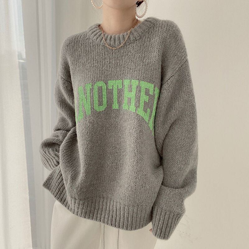 レディース レディースファッション ロゴ ニット セーター プルオーバー クルーネック トップス オーバーサイズ ゆったり 長袖 レトロ 大人可愛い ガーリー カジュアル おしゃれ 通販 韓国 韓国通販 韓国ショッピング 韓国ファッション おるちゃん オルチャン オルチャンファッション 10代 20代 30代 40代 可愛い かわいい お洒落 レディス プチプラ 激安 安い コーデ コーディネイト 人気 おすすめ