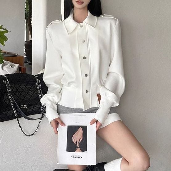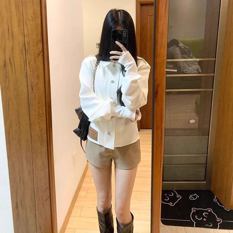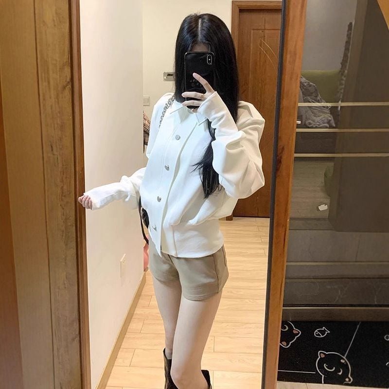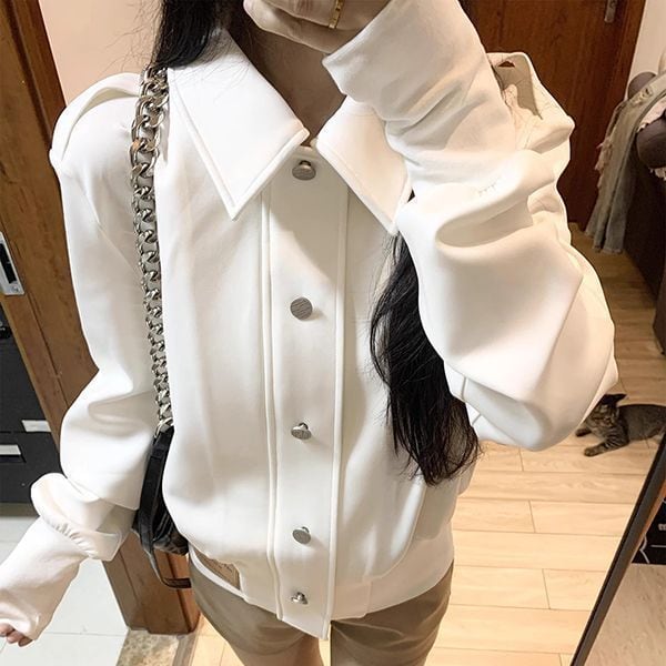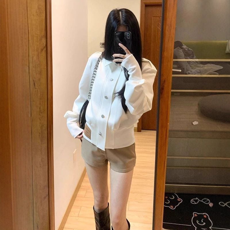 レディース レディースファッション ショート丈 ジャケット スタンドカラー ポロカラー 薄手 ライトアウター ホワイト 長袖 レトロ 大人可愛い ガーリー カジュアル おしゃれ 通販 韓国 韓国通販 韓国ショッピング 韓国ファッション おるちゃん オルチャン オルチャンファッション 10代 20代 30代 40代 可愛い かわいい お洒落 レディス プチプラ 激安 安い コーデ コーディネイト 人気 おすすめ